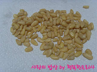 물을 갈아주면서 핏물을 뺀 다음 물기를 뺀다.
