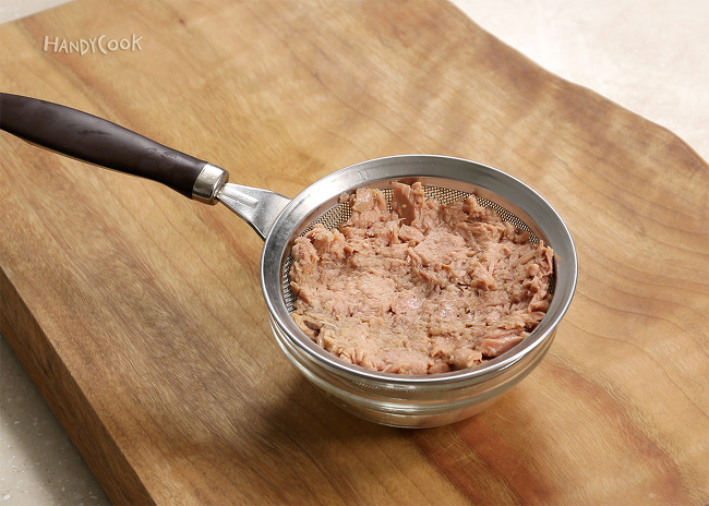1. 참치는 체에 밭쳐 기름기를 뺀다.