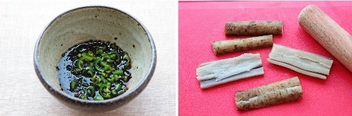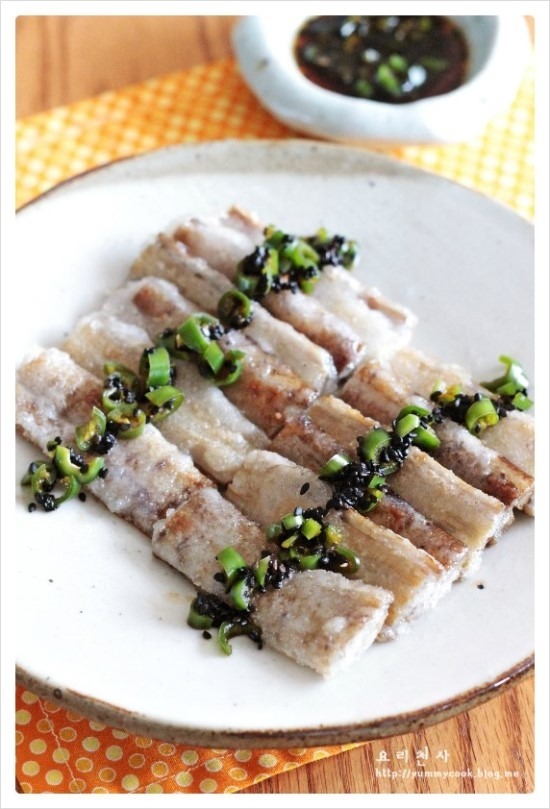 양념장: 간장 1큰술, 국간장 1큰술, 흑임자 1큰술, 풋고추 1개
