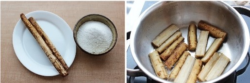 우엉은 수세미로 겉에 있는 흙만 닦아내며 씻어준다