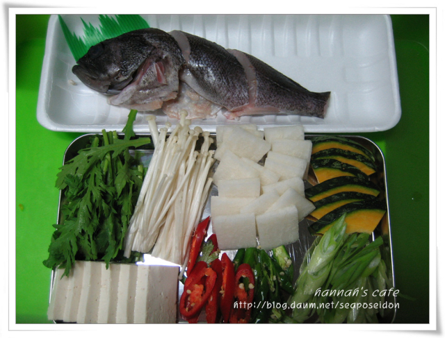 우럭 매운탕 맛있게 끓이기 칼칼하고 좀 매콤한 것에 끌려서는 시장을 보러 갔더니 마감세일로 우럭을 3,000원에 팔더군요. 냉큼 집어왔습니다. 우럭이 신선해서 그냥 무만 넣고 끓여도 될 것 같았지만 그래도 채소는 골고루 넣어봤습니다. 무, 단호박, 파, 고추, 쑥갓, 팽이버섯과 두부입니다. 양념은 엄마표 고추장하고 고춧가루하고 동량 섞고 집간장으로 간 맞추고, 마늘, 생강 넣어서 만들어 놓구요. 다시마 국물에 무 넣어서 끓이다가 양념장을 풀어줍니다.