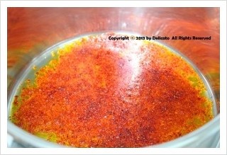 달군냄비에 오일 2큰술을 두른후 고춧가루를 솔솔 뿌려주신후