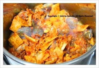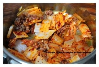 여기에...소고기, 무, 묵은지를 넣어서 달달 볶아주시고