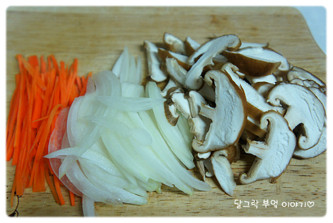 표고버섯 10개 정도, 양파 1/3개, 당근 약간,