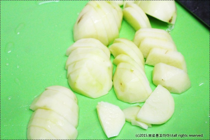 참참..감자는 썰어서 찬물에 넣었다가 20분정도 지나서 전분기 빠지면 건져놓았어요.