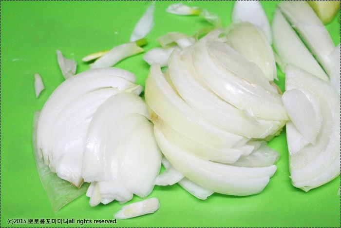 양파도 살짝 굵직하게 채썰어서 준비했어요.