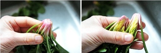 시금치는 밑동을 깨끗하게 다듬어 알맞게 갈라준다
