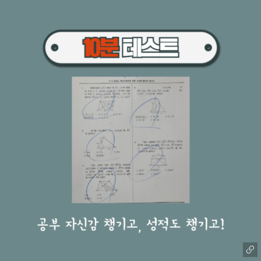 매 수업이 끝난 후 간단한 문제 몇 개를 10분 내로 풀어 선생님께 제출하는 것입니다.