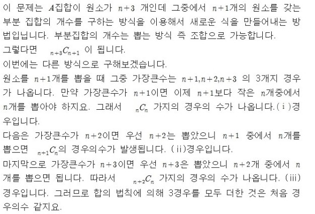 원소의 개수가 N+3개인 집합에서 원소의 개수가 N+1개인 부분집합의 개수 구하기 입니다