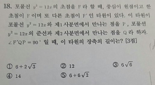 모의고사문제질문 이차곡선, 포물선, 타원 작성자dolphin|작성시간16.07.30|조회수208 목록 댓글 0 글자크기 작게가 글자크기 크게가 포물선과 타원의 정의와 개념을 이용하여 문제를 해결합니다.만나는 점들의 좌표를 찾아내고 포물선의 정의를 이용하여 문제를 해결합니다.질문)답변수학과 변명희T 입니다. 다음검색 현재 게시글 추가 기능 열기 북마크 공유하기 신고 센터로 신고 댓글 댓글 0 댓글쓰기 답글쓰기 댓글 리스트