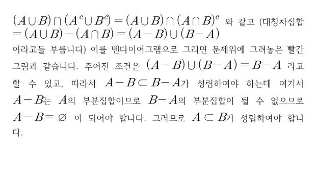 대칭차집합 관련 아주쉽게 이해좀 작성자dolphin|작성시간16.01.12|조회수111 목록 댓글 0 글자크기 작게가 글자크기 크게가 질문 아주쉽게 이해좀 답변 선생님도 매월 시험보는 목동고등수학학원 길벗아카데미 수학과 임창훈입니다. 다음검색 현재 게시글 추가 기능 열기 북마크 공유하기 신고 센터로 신고 댓글 댓글 0 댓글쓰기 답글쓰기 댓글 리스트