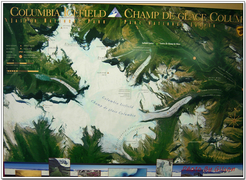 Columbia lcefield를 비롯한] 수많은 크고 작은 빙원이 펼쳐져 있고, 빙원과 호수 사이는 빙하로 연결되어