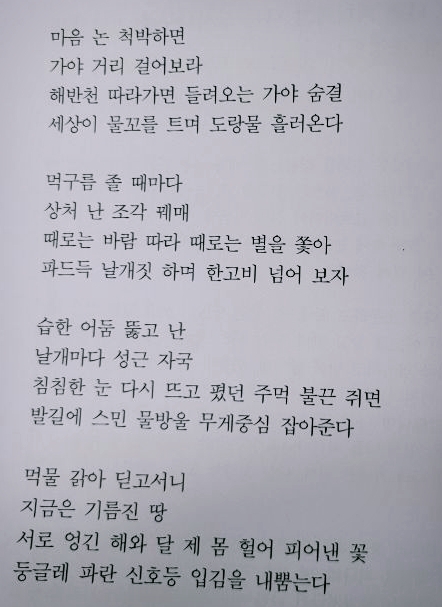 침침한 눈 다시 뜨고 폈던 주먹 불끈 쥐면