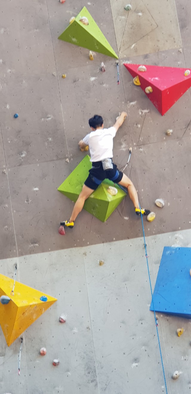 선등 끝내고 성연이는 스피드가 더 좋다고 다른분들 쉴때 올라갔서용~ 그 모습을 밑에서 보고있는 다경이