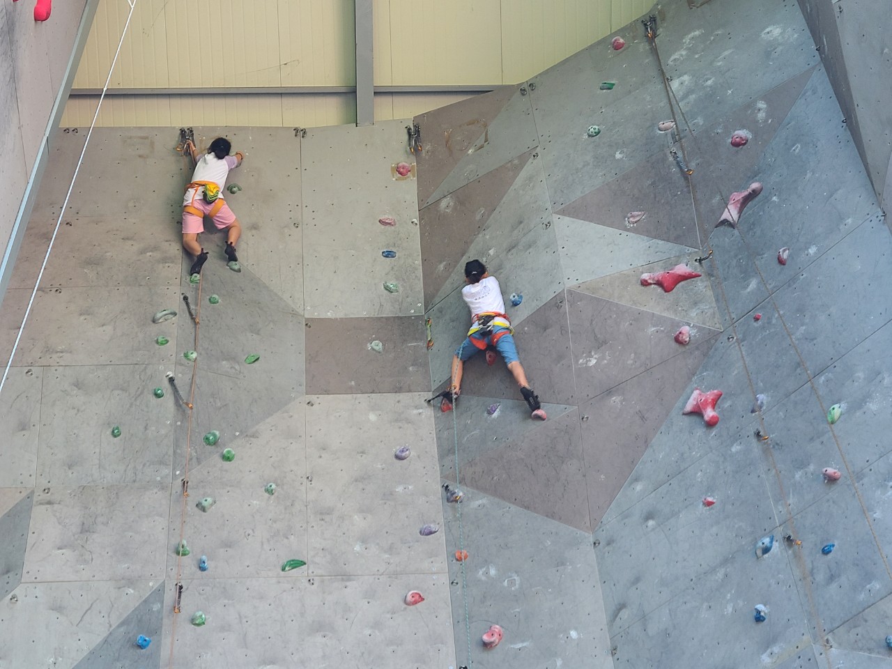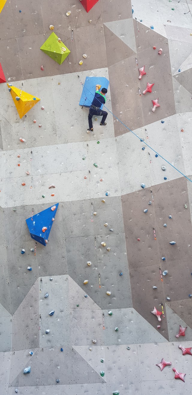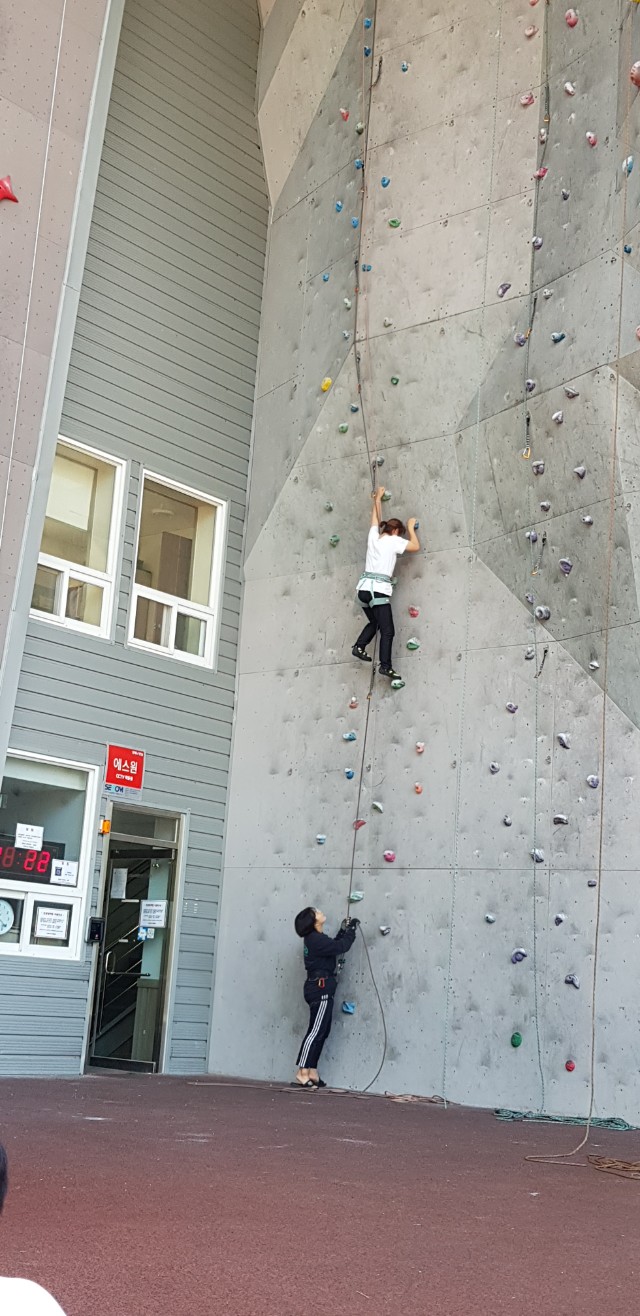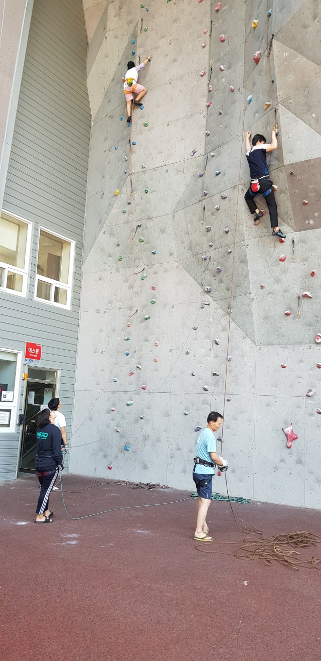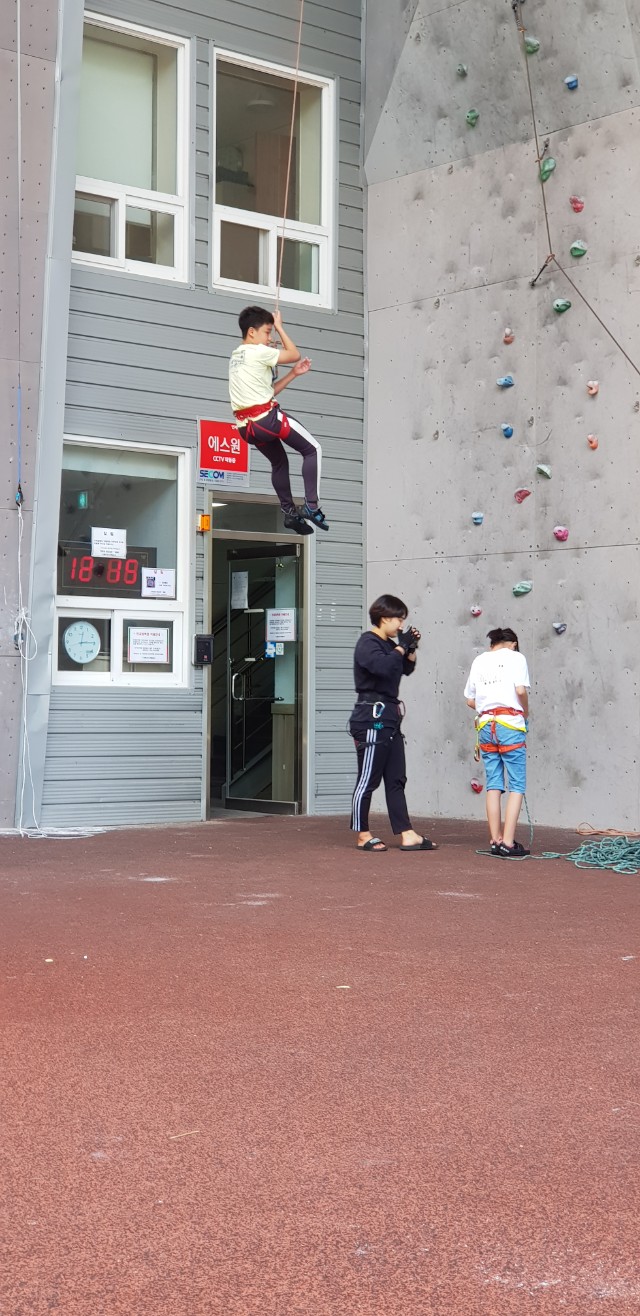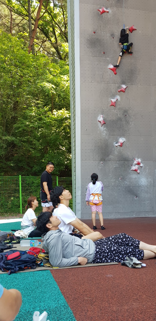 초등학생 및 중학생 선등연습하러 삼계인공암벽을 왔습니다.