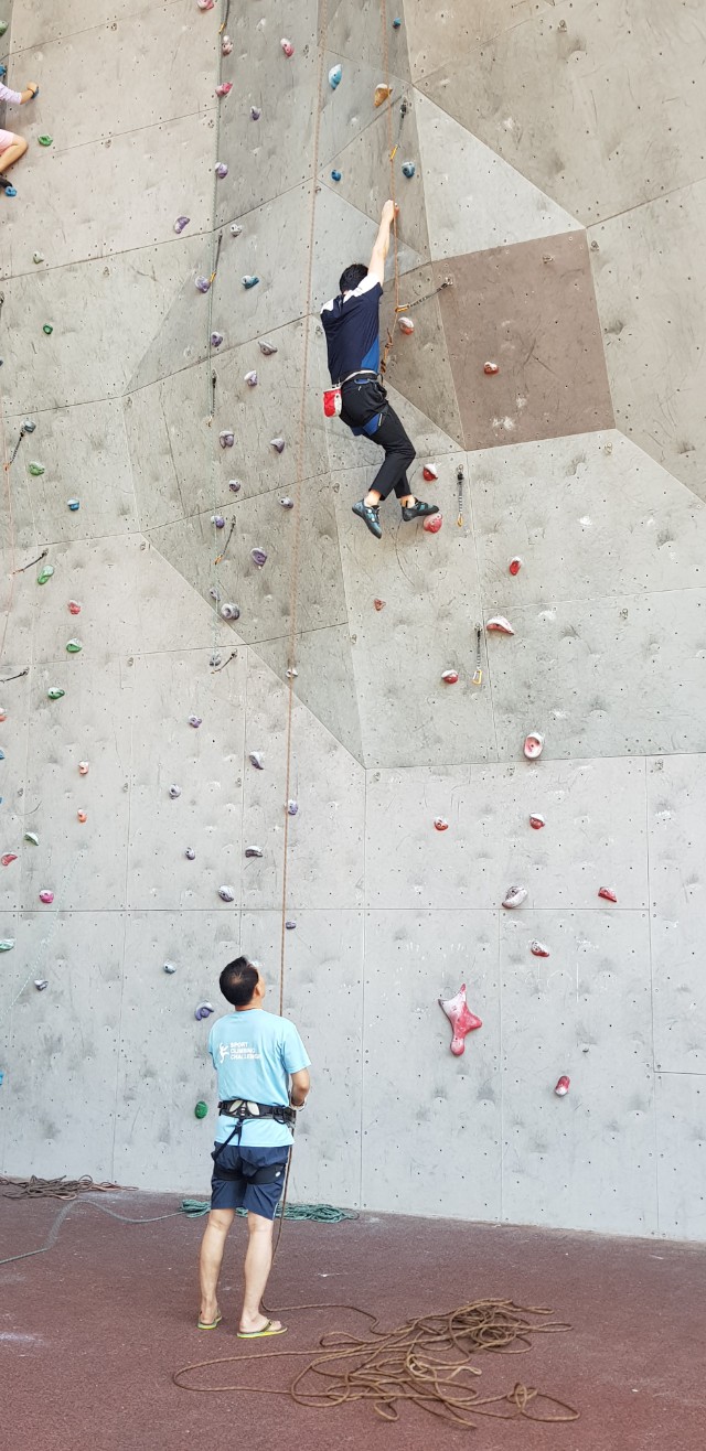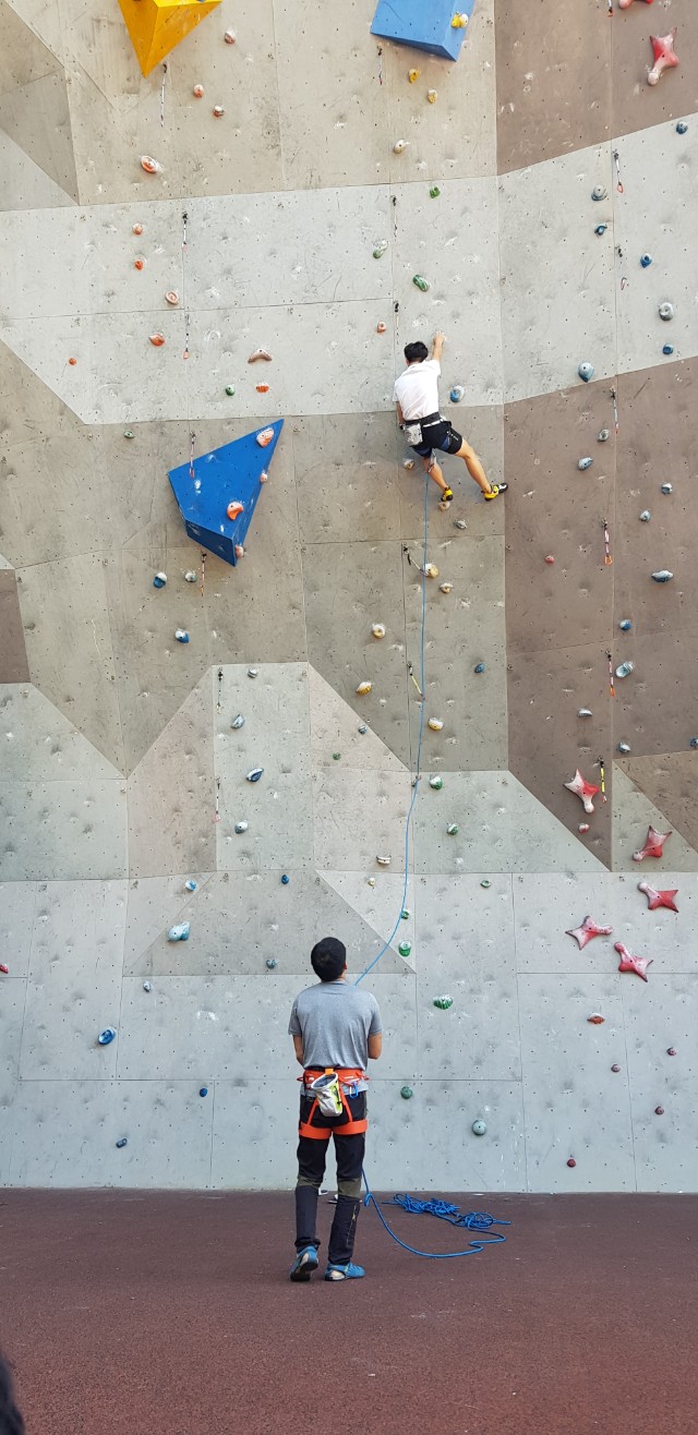 처음으로 삼계인공암벽체험을 나온 상민님 처음엔 무서워했는데 완등은 하고 내려왔어요! 고생하셨어용