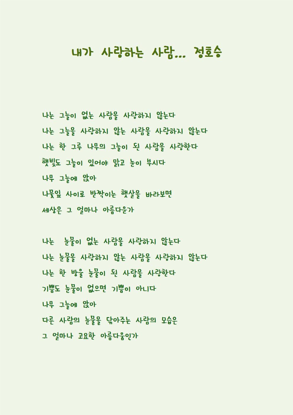 정호승님의 <내가 사랑하는 사람>