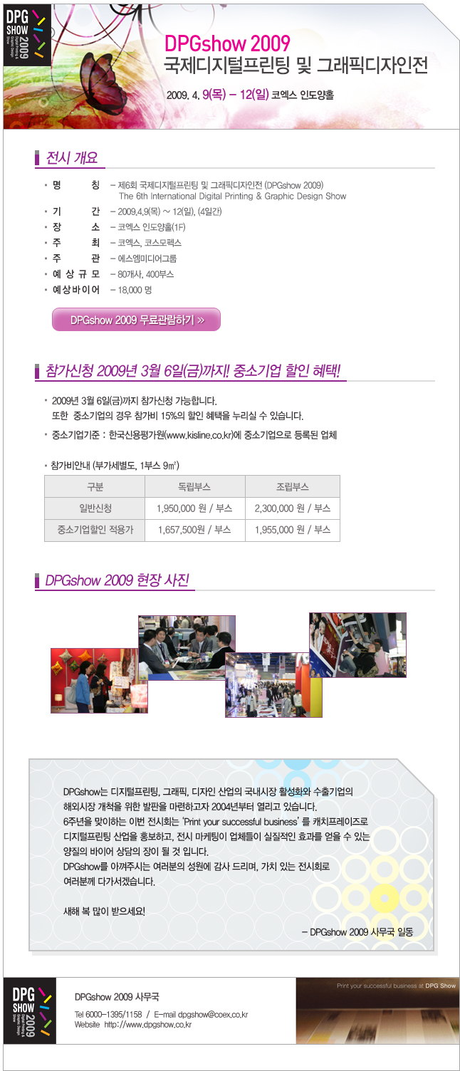 [[공지사항]]DPGshow 2009 온라인 뉴스레터 작성자DPG2009|작성시간09.02.09|조회수61 목록 댓글 0 글자크기 작게가 글자크기 크게가 http://www.dpgshow.co.kr/2009/visitor/pre.asp 다음검색 현재 게시글 추가 기능 열기 북마크 공유하기 신고 센터로 신고 댓글 댓글 0 댓글쓰기 답글쓰기 댓글 리스트