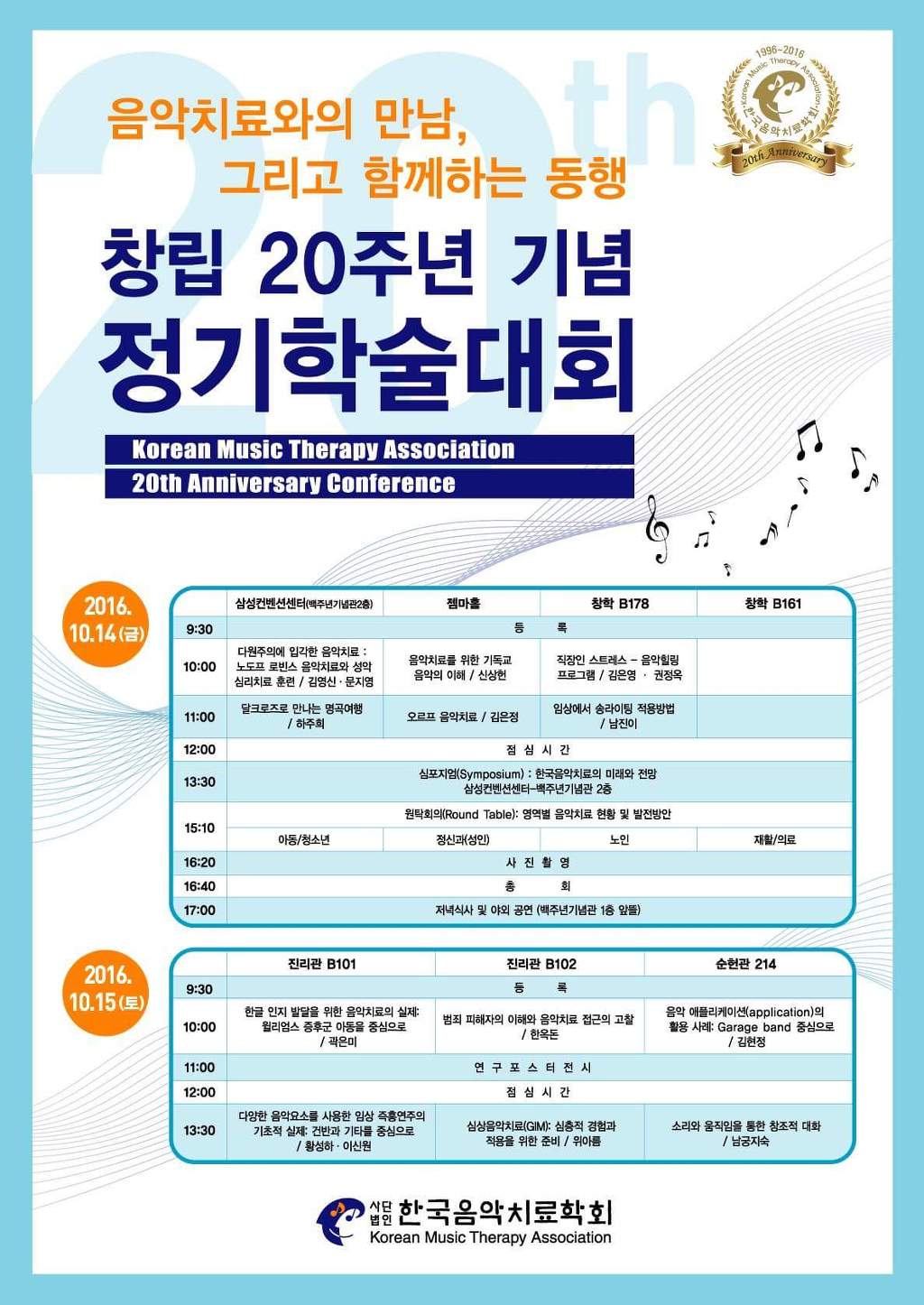 (사)한국음악치료학회 창립 20주년기념 정기학술대회 작성자GIM마음클리닉|작성시간16.10.24|조회수75 목록 댓글 0 글자크기 작게가 글자크기 크게가 (사)한국음악치료학회 창립 20주년 정기학술대회가 10월 14,15일에 열렸습니다. '음악치료와의 만남, 그리고 함께 하는 동행'의 주제로 다양한 임상에서의 연구와 나눔이 있었습니다. 다음검색 현재 게시글 추가 기능 열기 북마크 공유하기 신고 센터로 신고 댓글 댓글 0 댓글쓰기 답글쓰기 댓글 리스트