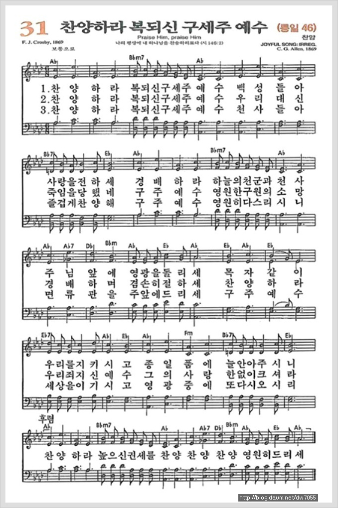찬양하라 복되신 구세주 예수[찬양*악보*가사] - 새찬송가 31장, 통일찬송가 46장