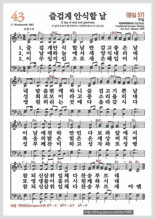 즐겁게 안식할 날[찬양*악보*가사] - 새찬송가 43장, 통일찬송가 57장