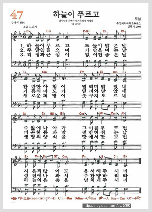 하늘이 푸르고[찬양*악보*가사] - 새찬송가 47장