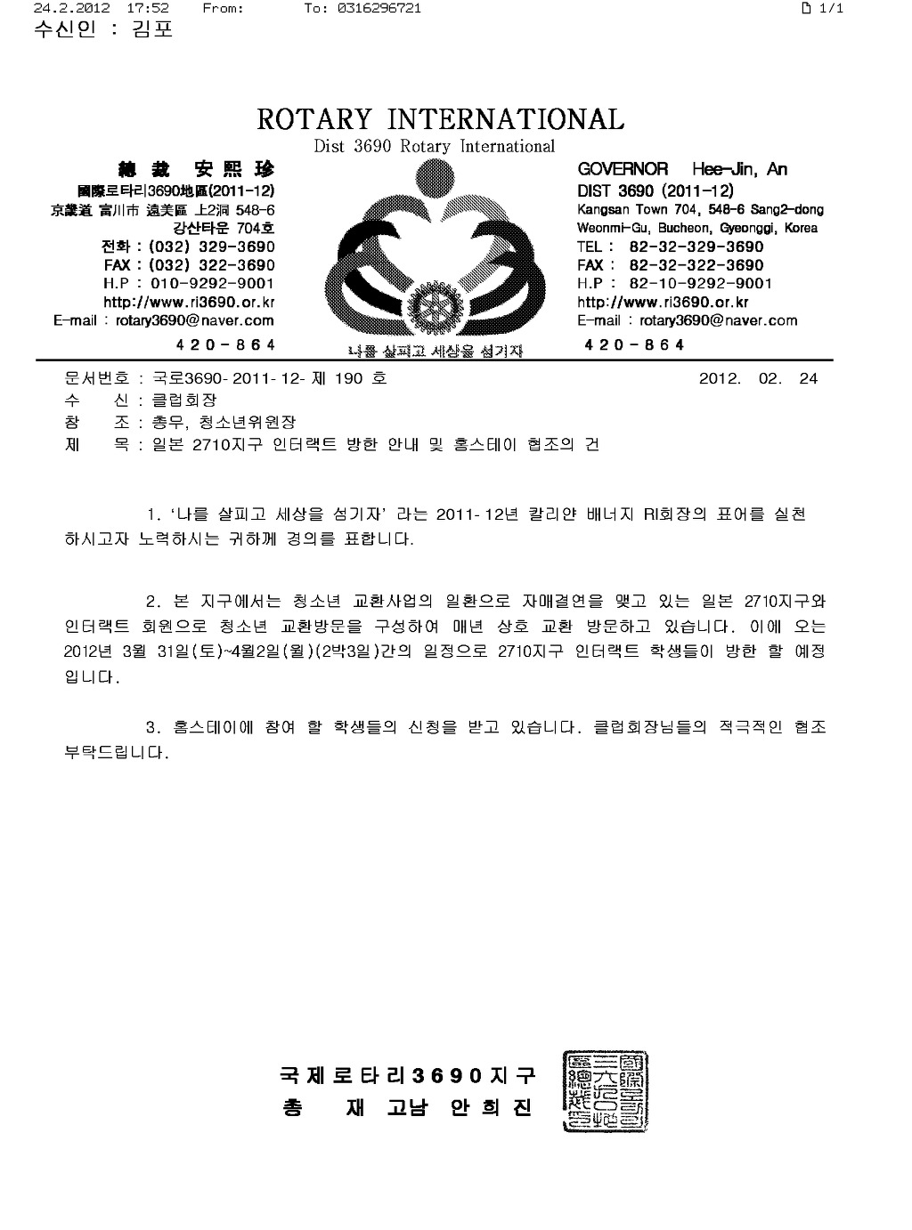 일본 2710지구 인터랙트 방한 안내 및 홈스테이 협조의 건 작성자불가사리|작성시간12.02.27|조회수9 목록 댓글 0 글자크기 작게가 글자크기 크게가 다음검색 현재 게시글 추가 기능 열기 북마크 공유하기 신고 센터로 신고 댓글 댓글 0 댓글쓰기 답글쓰기 댓글 리스트