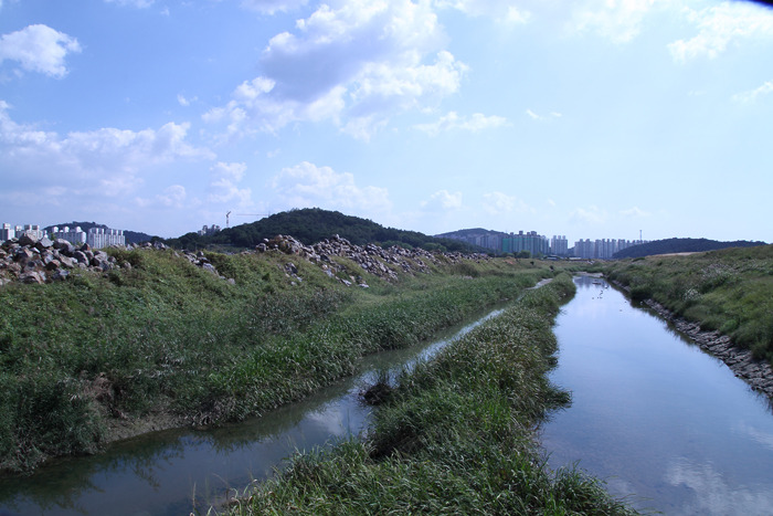 ▷ 완정천을 지나 인천수계의 끝지점까지 직강화 하천이다. 오직 치수를 위한 방재하천...