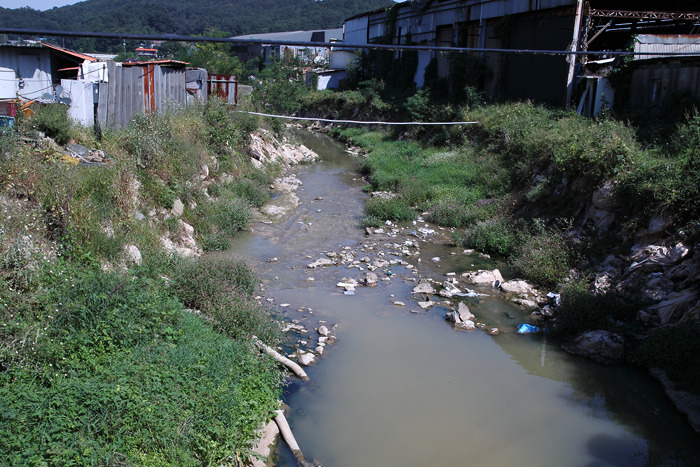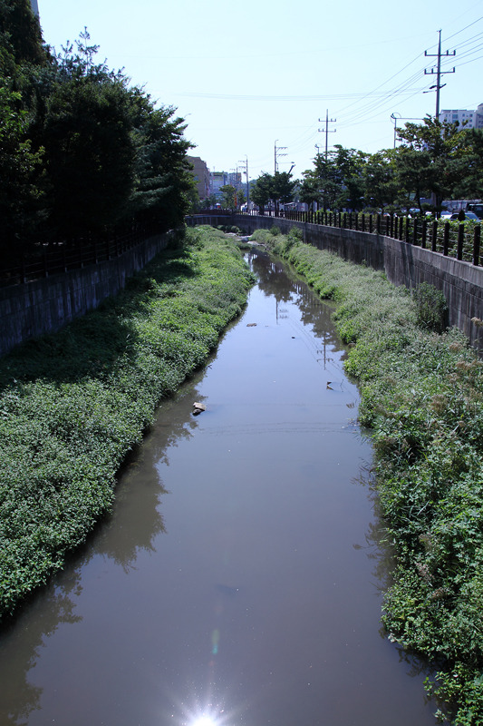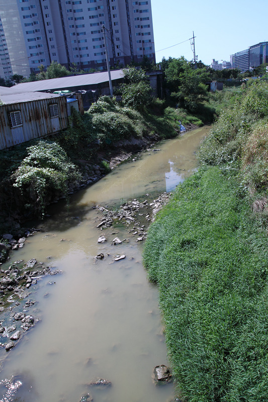 ▷ 복개구간의 끝부분. 탁도가 눈에띄게 증가 하였음을 알수 있다.