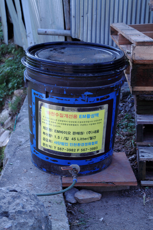 유용미생물(EM) 공급탱크의 설치와 담채를 이용하여 유용미생물을 투입하여