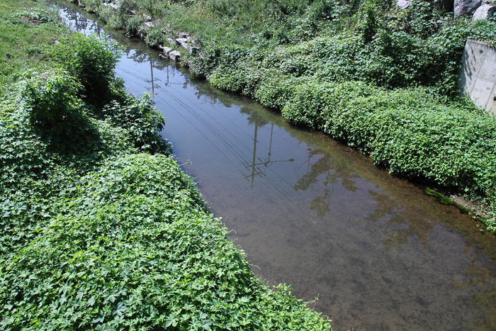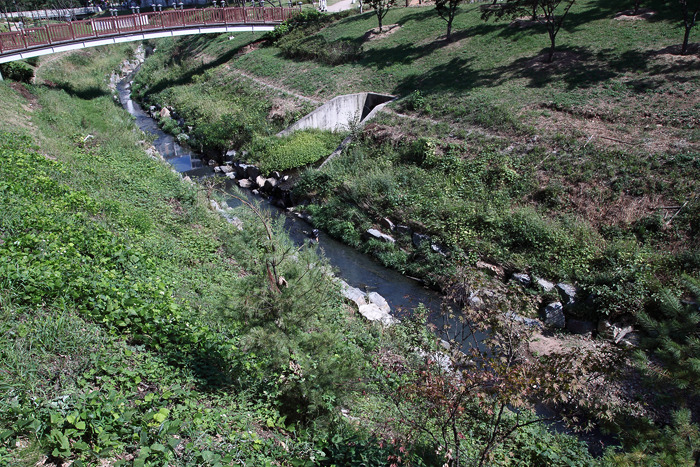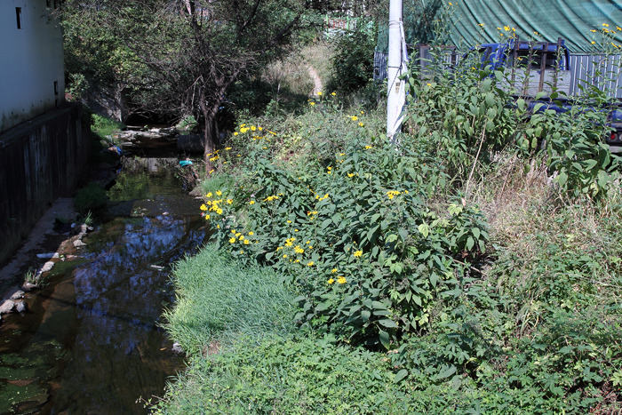 ▷ 사진 상단부에 복개구간의 시작지점이 보인다. 아직 육안으로 파악한 수질은 좋아 보인다.