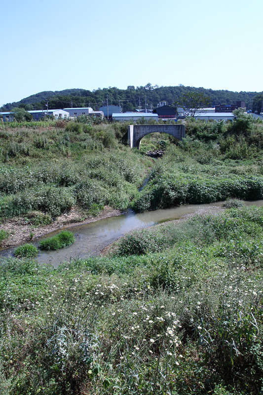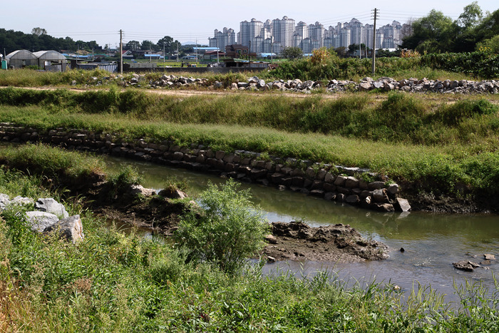 ▷ 나진포천의 하류에 위치한 배수갑문. 이 곳을 통하여 한강으로 흘러든다.