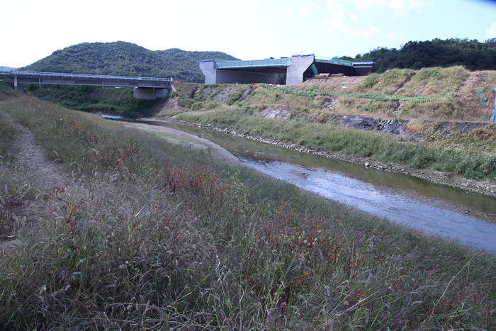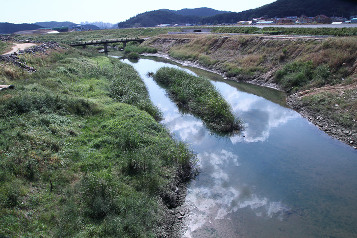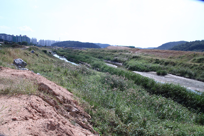 ▷ 치수를 목적으로 하는 개수공사와 98번 지방도로 공사로 주변환경이 어수선한 가운데 갈대와 줄등 하천의 식생은 활발하다.