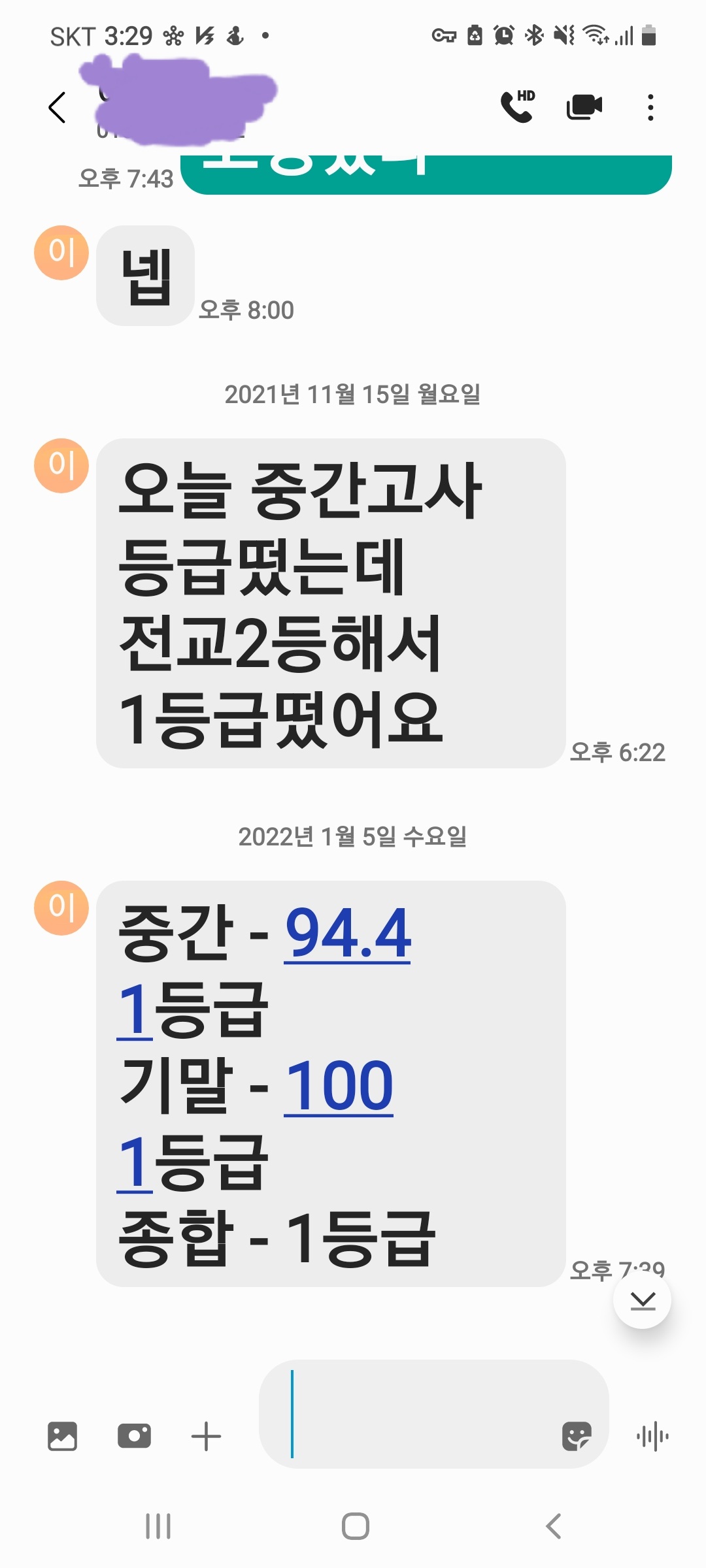 그리고 재수하였던 선배에게서도 영어과목에서 높은 등급을 받았다는 전화를 받았습니다.