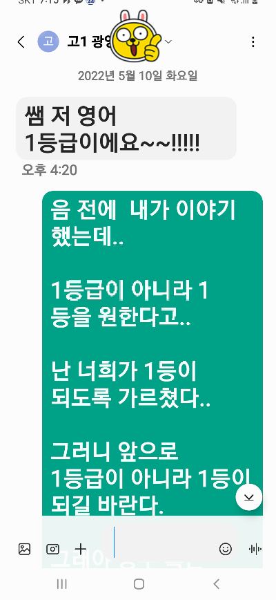 영어공부를 잘 할 수 있는 친구라면 전교 1등급이 아니라 전교 1등을 만들어내는 힘이 저에게 있습니다.