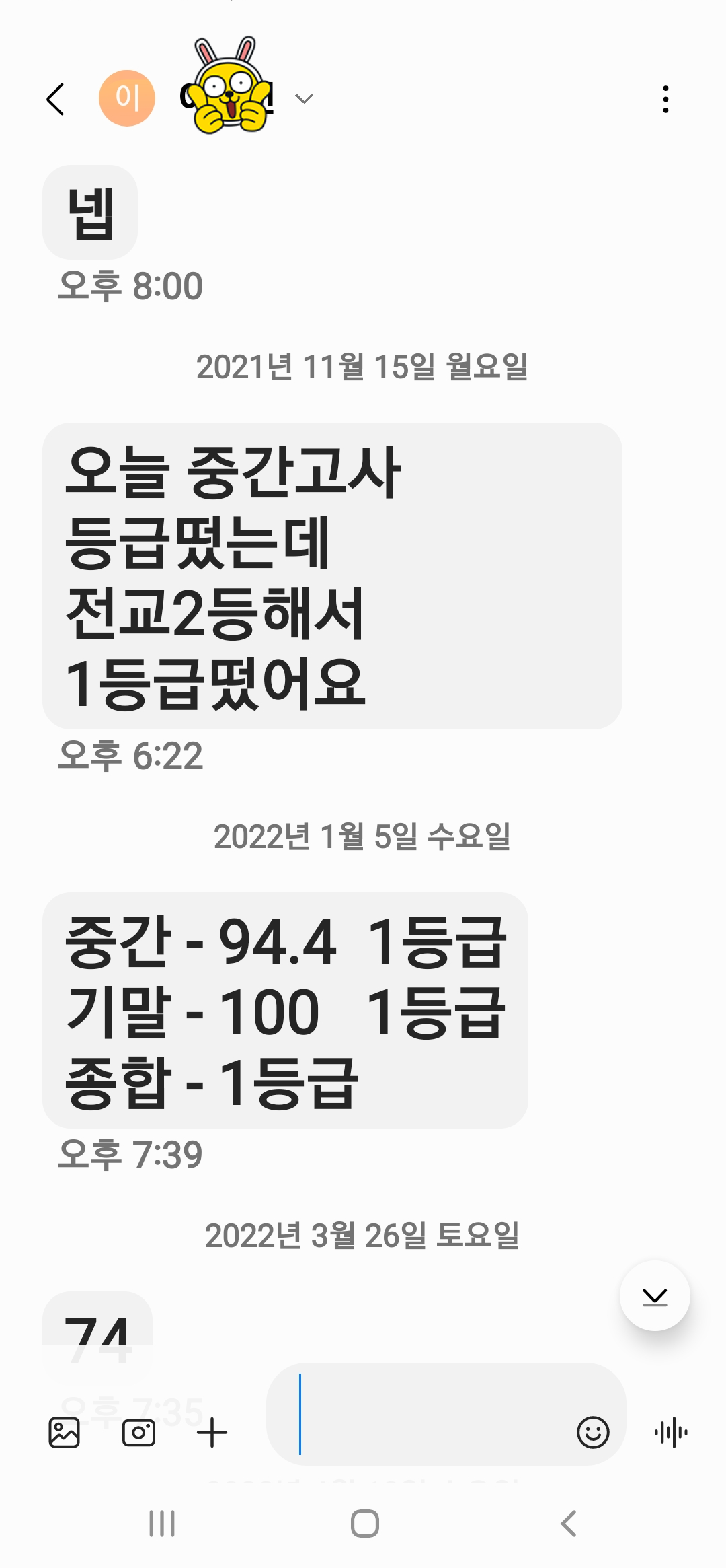 2021년(코로나가 한창인 21년 11월~12월 늦은 중간/기말 결과)