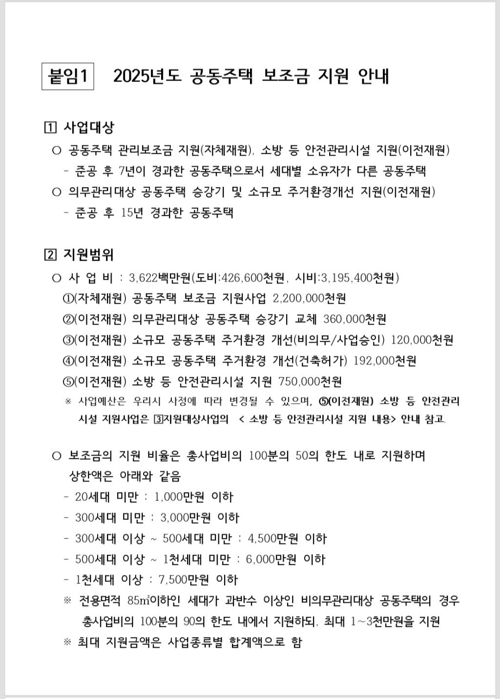 2025년도 용인시 공동주택 보조금 지원사업 대상자 모집공고가 발표되었습니다.