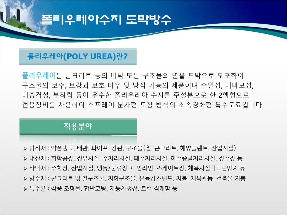 10년간 관급공사 폴리우레아 방수공사 시공업체로 많은 노하우와 기술력으로 확장·이전하여 하우건설로 다시 인사드리게 되었습니다.