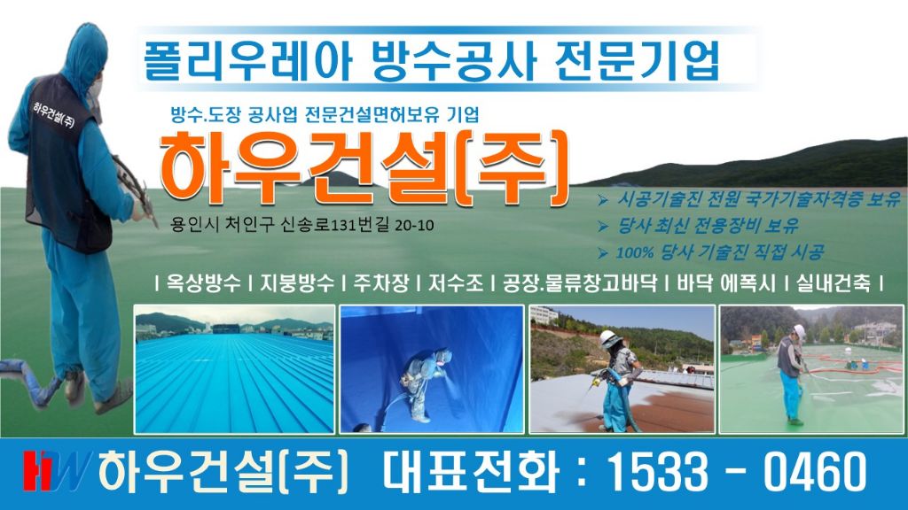 용인, 이천, 수원, 공장, 창고, 건물, 조립식, 방수공사, 옥상방수공사, 페인트공사, 에폭시공사 전문기업 하우건설(주)입니다.