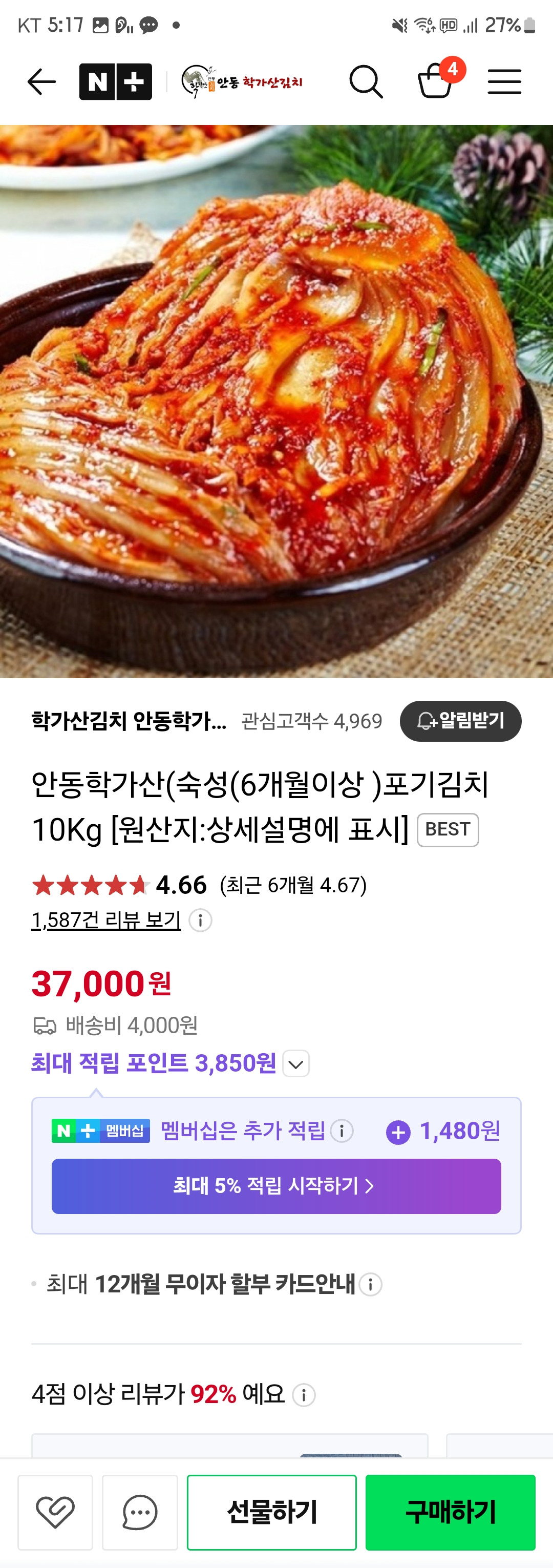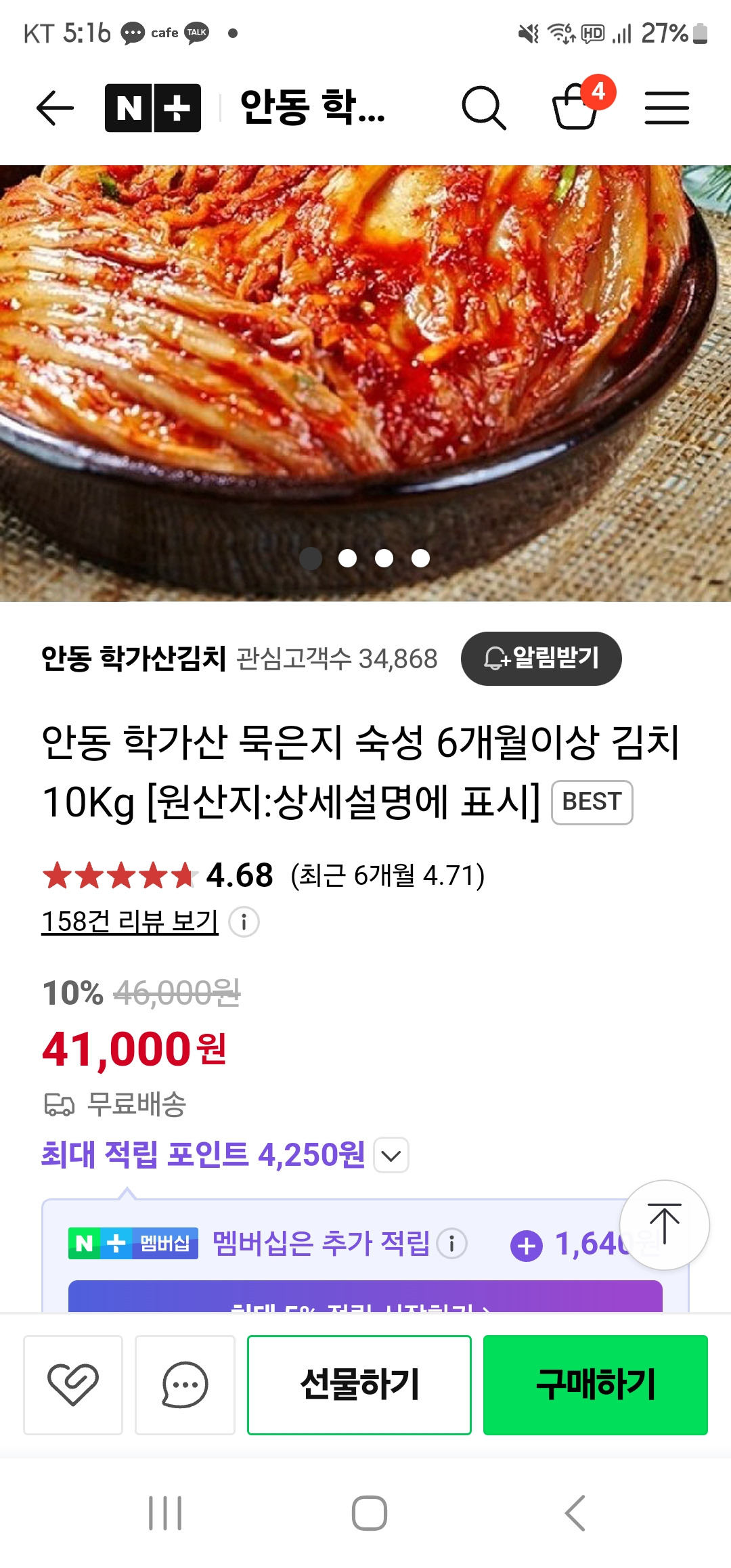 새김치는 5키로에28000원하네요