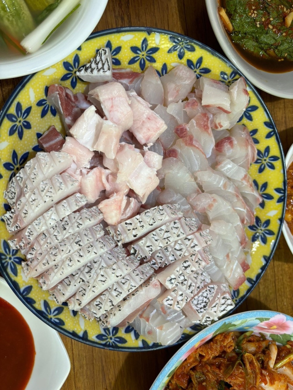 댁에서 민어회 민어지리탕 민어전 민어동그랑땡 등등