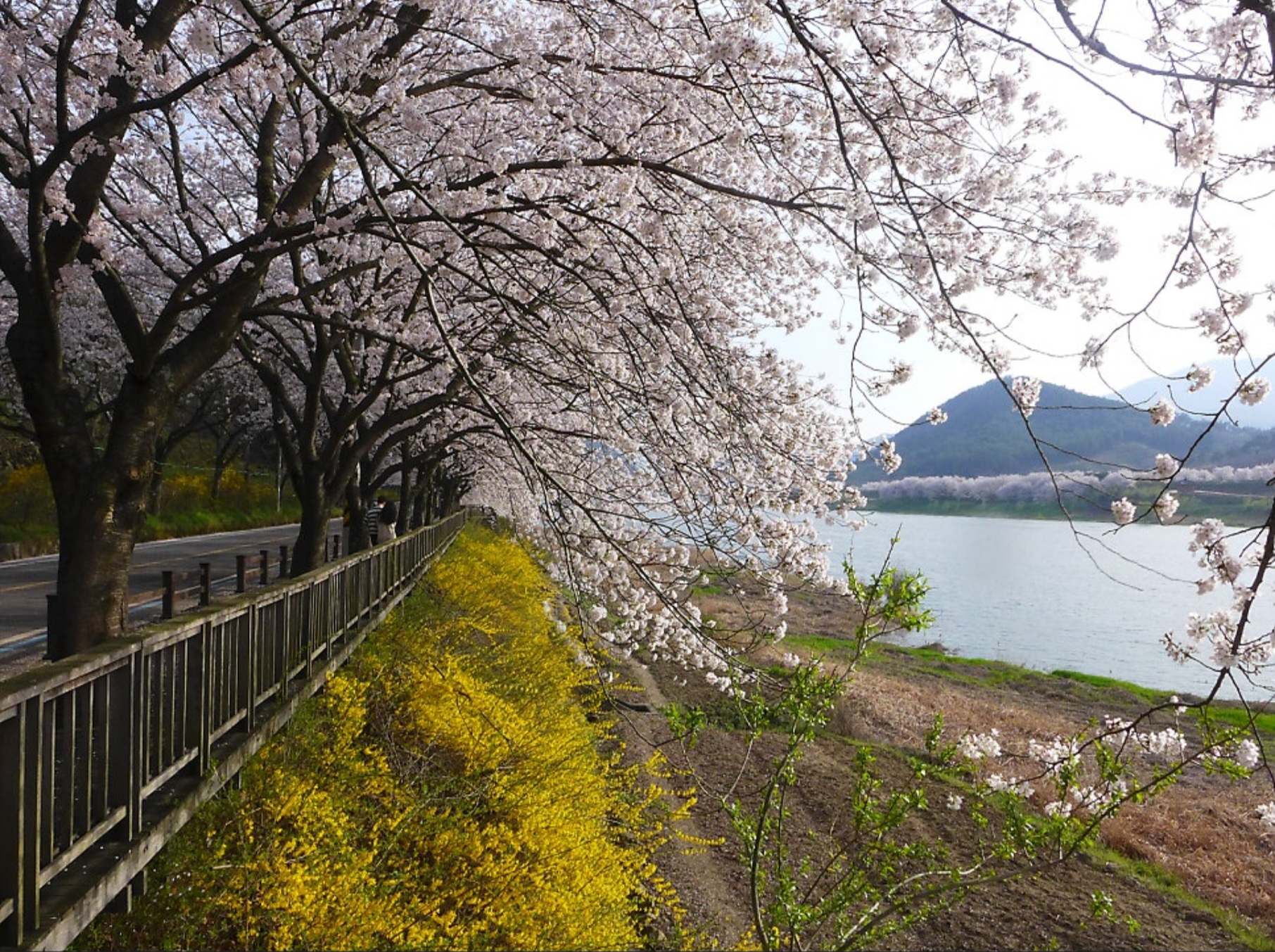 윗사진은 섬진강가 사성암, 아래 사진은 섬진강가 벚꽃