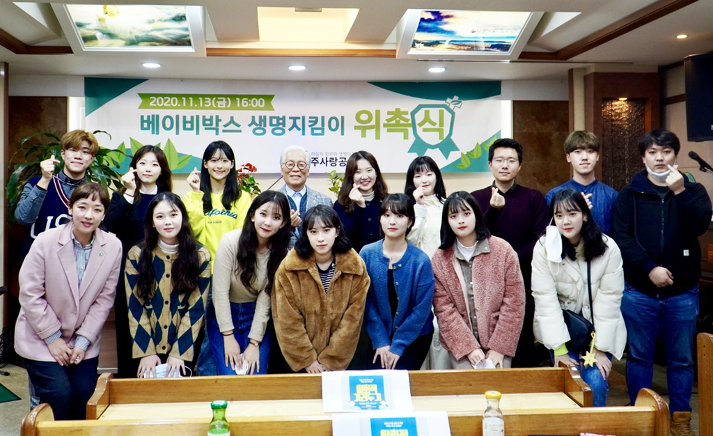 2020년 11월 13일(금) 주사랑공동체에서는 생명지키기 사역의 활성화를 위해 청년들로 구성된 “베이비박스 생명지킴이 온라인 서포터즈 1기” 위촉식 행사를 가졌습니다.