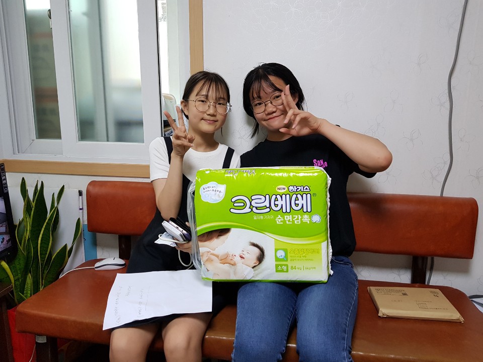 강남중학교에 다니는 1학년 김예서, 이다민 친구가 가정수업 시간에 베이비박스에대해 듣게 되었고, 마음에 감동이 되어 자신들의 용돈을 모아 베이비박스를 방문하게 되었습니다. 위치를 몰라 경찰서에 주소를 물어 이곳까지 찾아와준 예쁜 두 학생들~