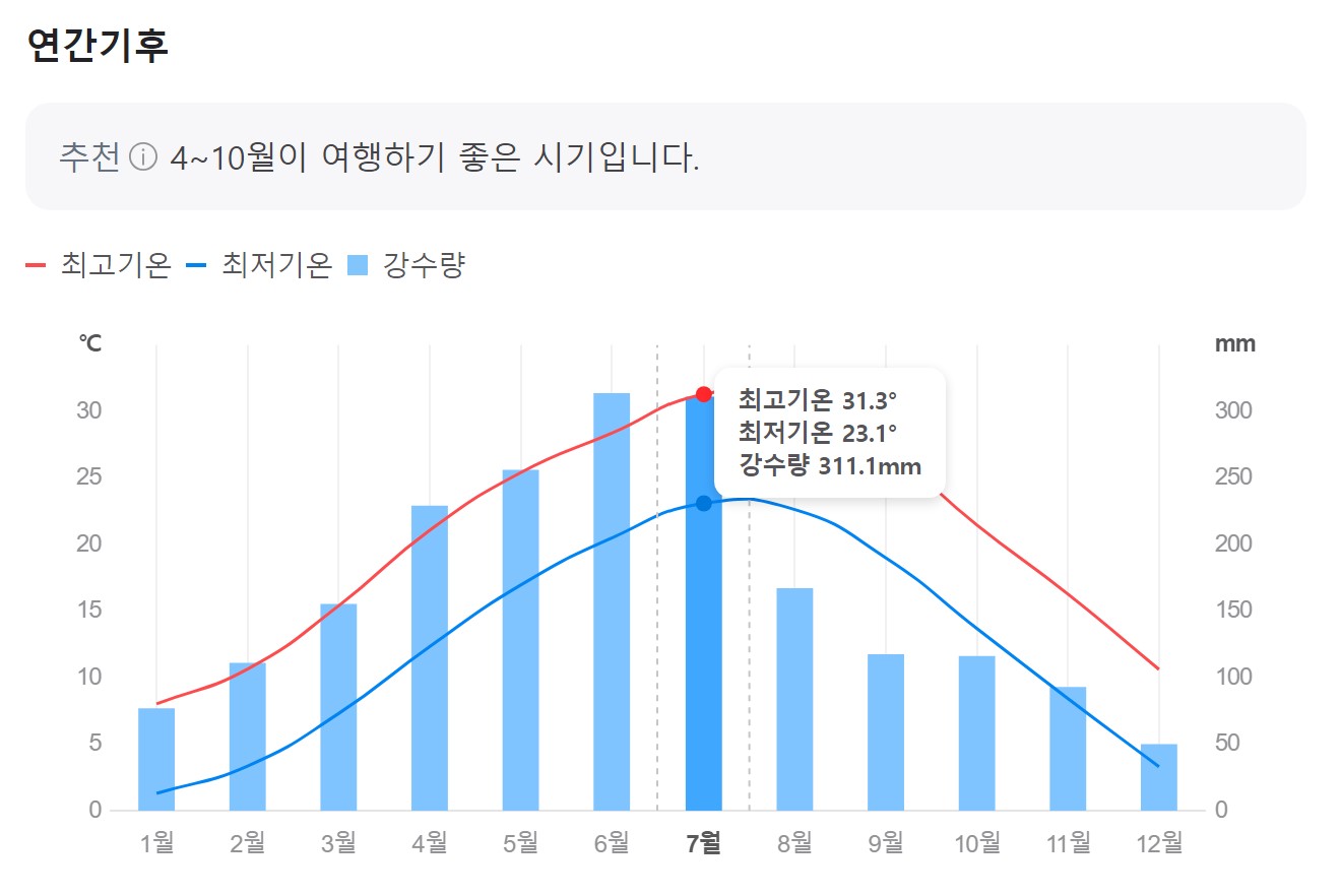 많은 한국의 여행객들이 갑니다.