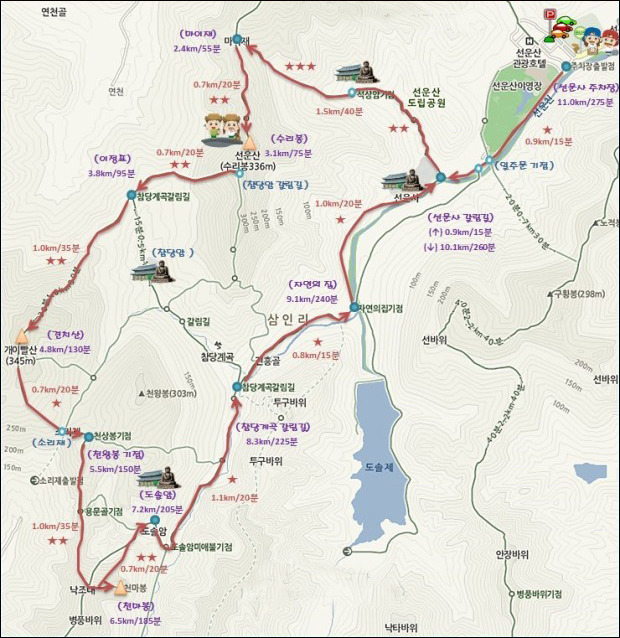 ☞ 표고차 286m (출발지점 해발 50m, 최고점 해발 336m)