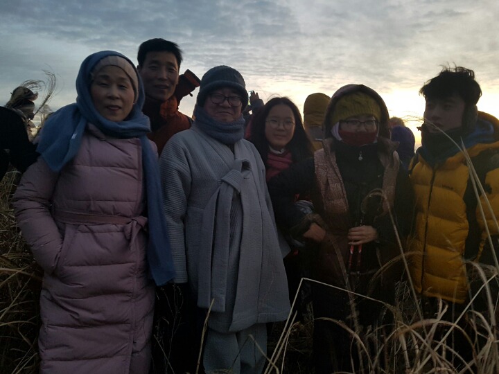 정상에 도착하니 수많은 사람들이 일출을 기다리고 있었다. 으으 얼마나 추운지. 그 추운 날씨에도 중현스님께서는 다라니 독송과 참가자들의 소구소망을 일일이 축원해주셨다. 스님의 축원으로 참가자들과 불교환경연대 한해 모든 일들이 원만히 성취되리라.