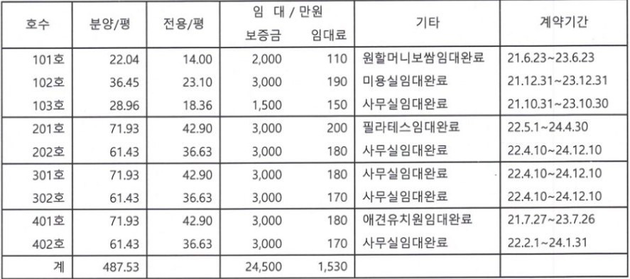 | 지상(주) | 4층 | 철근콘크리트구조 | 제2종근린생활시설(사무소) | 323.58 |