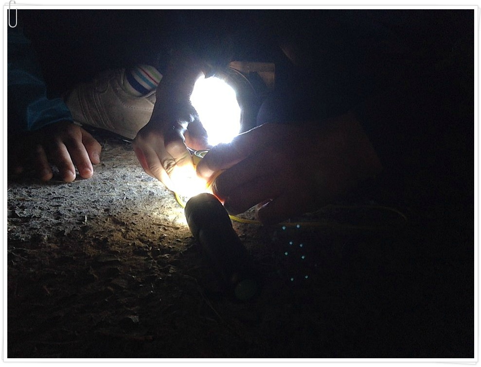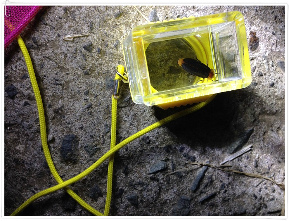 내려오는 길에, 빛을 내며 날아다니던 반딧불이 한 마리를 잠자리채로 잡아서 어린 친구들과 관찰해 보았어요.^^