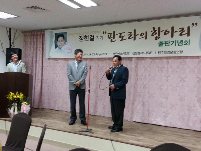 정현걸 의장님의 소설 실록 방폐장 '판도라의 항의리' 출판 기념회를 예술의 전당 뷔페식장에서 했습니다.